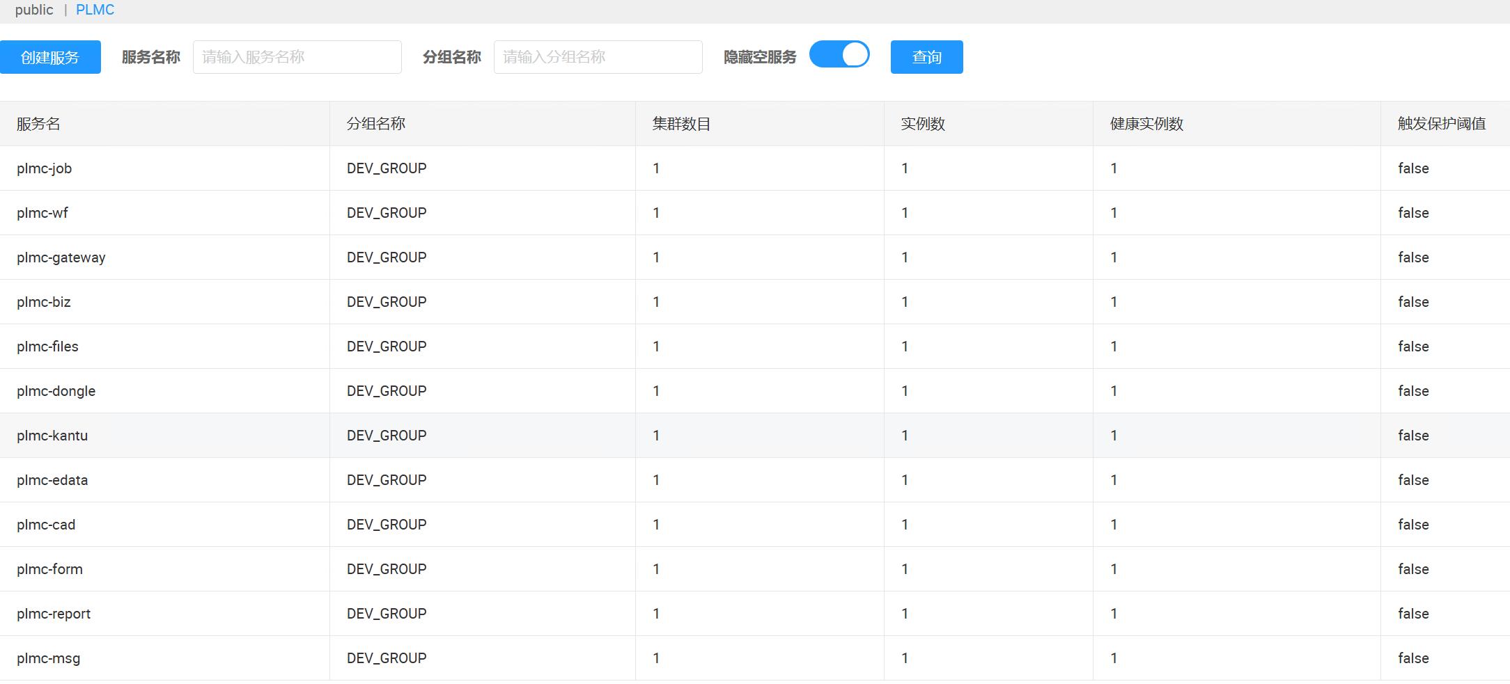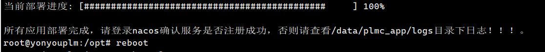 所有应用部署完成,请登录nacos确认服务是否注册成功,否则请查看/data/plmc_app/logs目录下日志!!!。