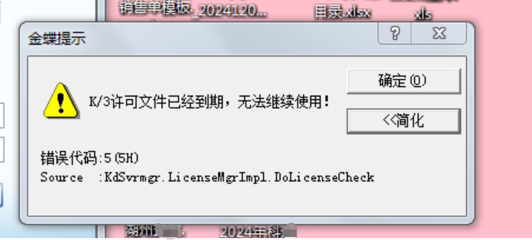金蝶K3成长版12.0登录时提示“K/3许可文件已经到期,错误代码:5 (5H) Source:KdSvrmgr.LicenseMgrImpl.DoLicenseCheck”的解决办法