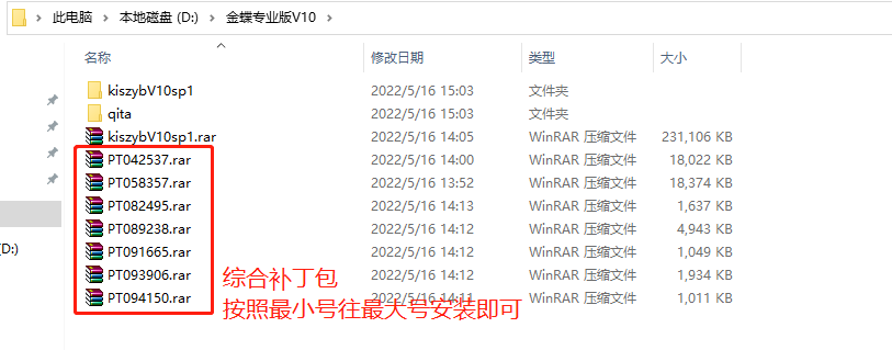 6、全部安装完之后,记得要安装补丁,安装补丁要安装补丁号由小–到大的安装方式如下图: