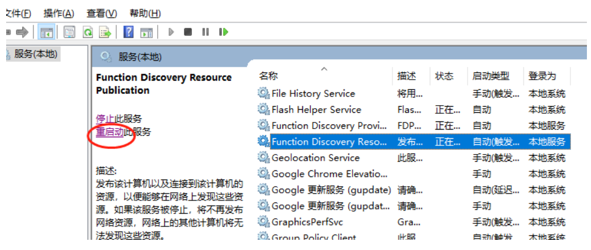 今天有客户说他系统是Windows10,局域网共享时每次重启电脑后都要手动重新启动Function Discovery Resource Publication,明明已经把“Function Discovery Resource Publication”设置为自启动,但每次重启电脑后都要手动重新启动”Function Discovery Resource Publication”才能在局域网发现共享电脑,很是费解,也很苦恼,问问是不是有啥好的解决办法;