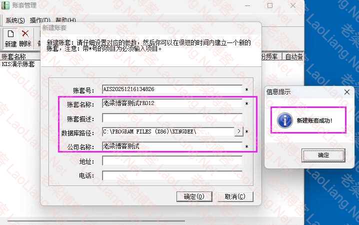 然后去账套管理去创建新的账套,一切没毛病,如下图所示