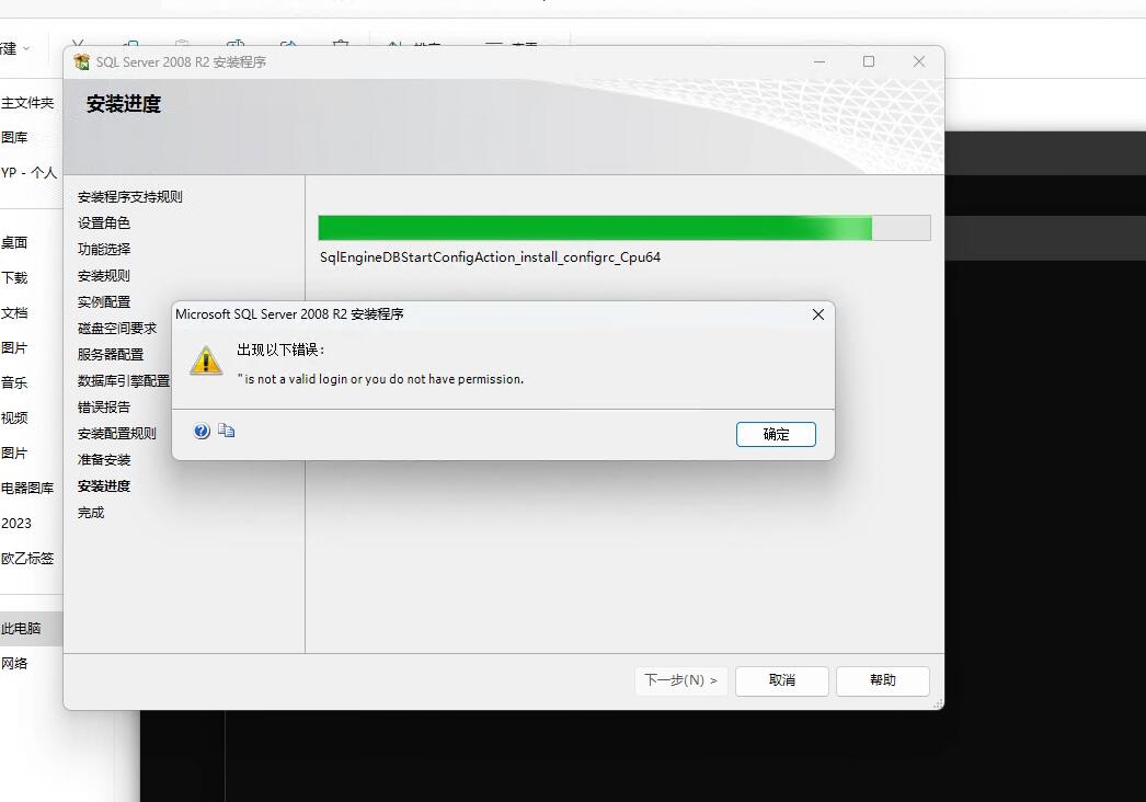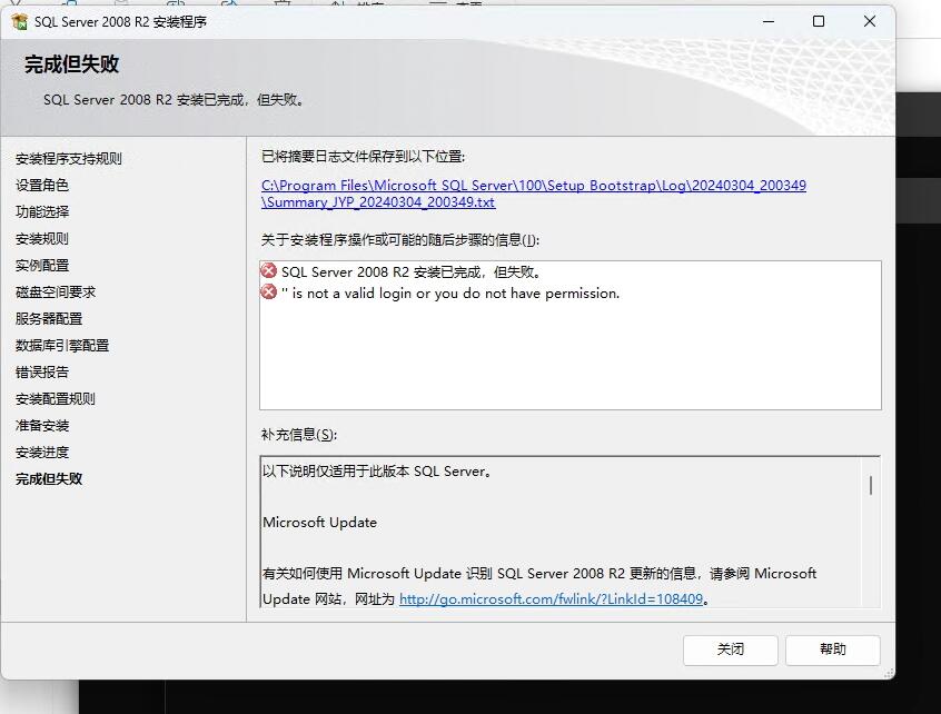 SQL SERVER 2008 R2安装已完成,但失败。”is not a valid login or you do have permission”
