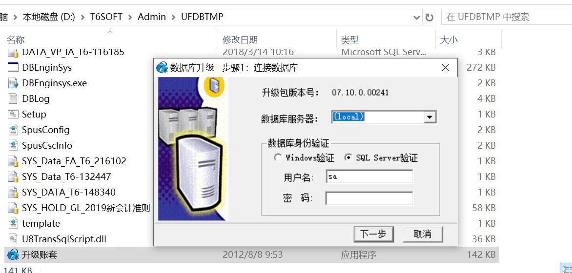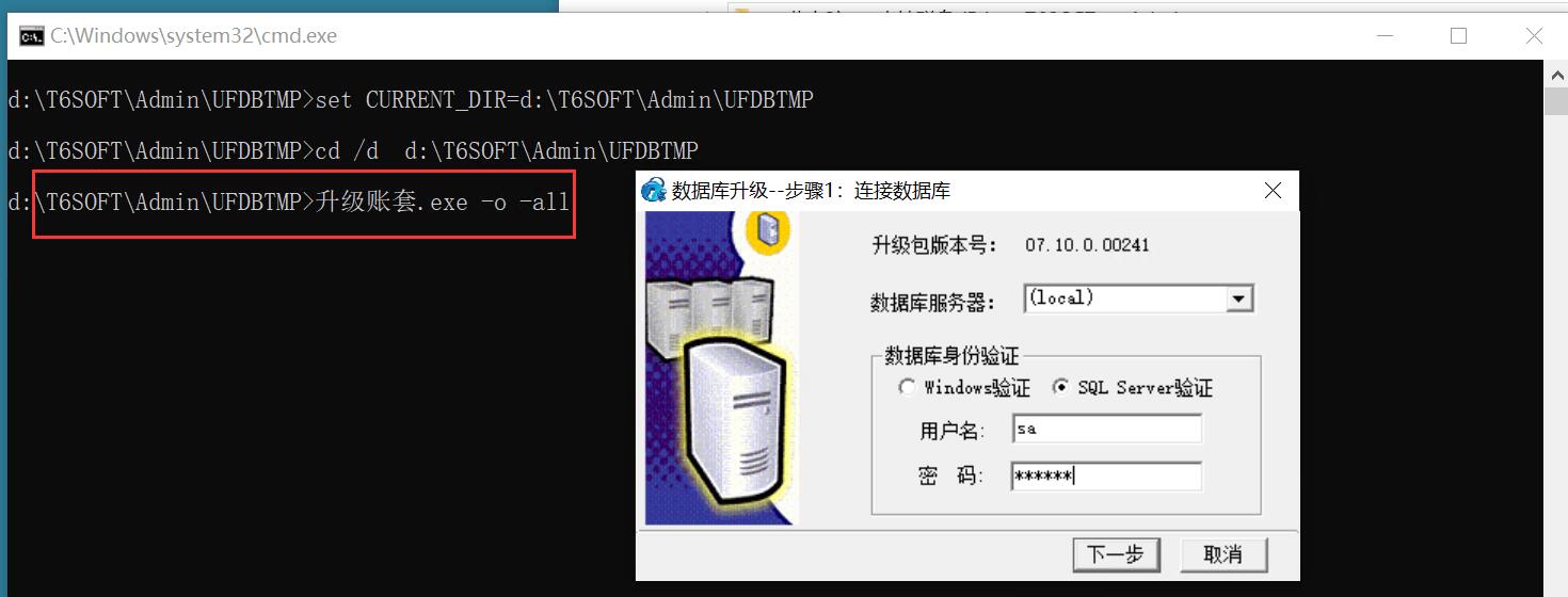 \T6SOFT\Admin\UFDBTMP>升级账套.exe